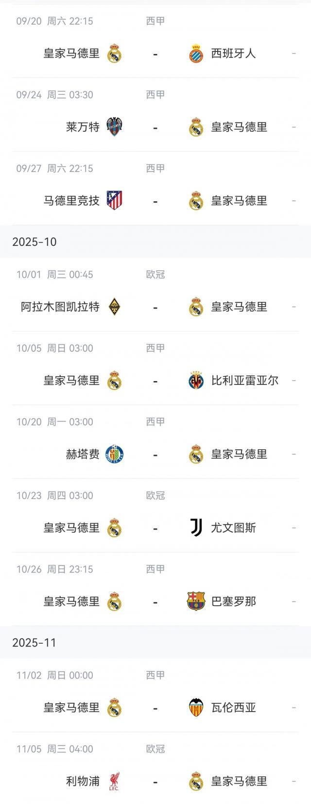 皇马赛程